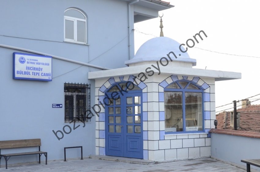 Beykoz İncir Köy Bülbültepe Cami - tuvalet şadırvan abdeshane sıvaları ana kapı girişleri tüm kaba sıva , ince sıva ve mozaik sıvaları firmamız tarafından tamamlanmıştır.