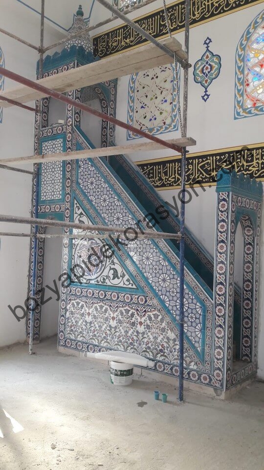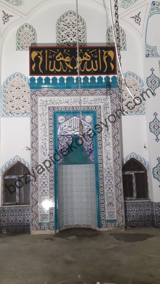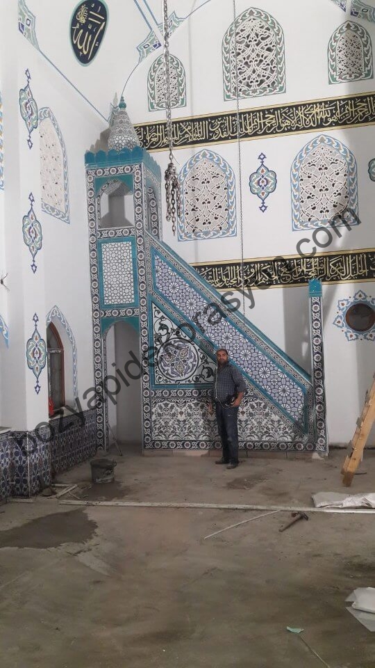 Sinop Türkeli Akçabük Köyü Camii mihrap minber kürsü çini işleri Boz Yapı Dekorasyon kalitesi ile tamamlanmıştır. Cami´mizde yaptığımız uygulamalara ait görselleri web sitemizden inceleyebilirsiniz.